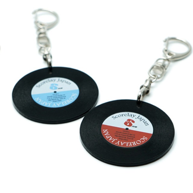 アクリル製レコード型のキーホルダーです。 中央部にオリジナルデザインのプリントが可能です。