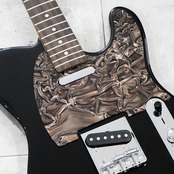 ゴールドのようなメタリックブラウンに黒いラインが混ざり合った存在感抜群のアクリル製テレキャスター用ピックガードです。